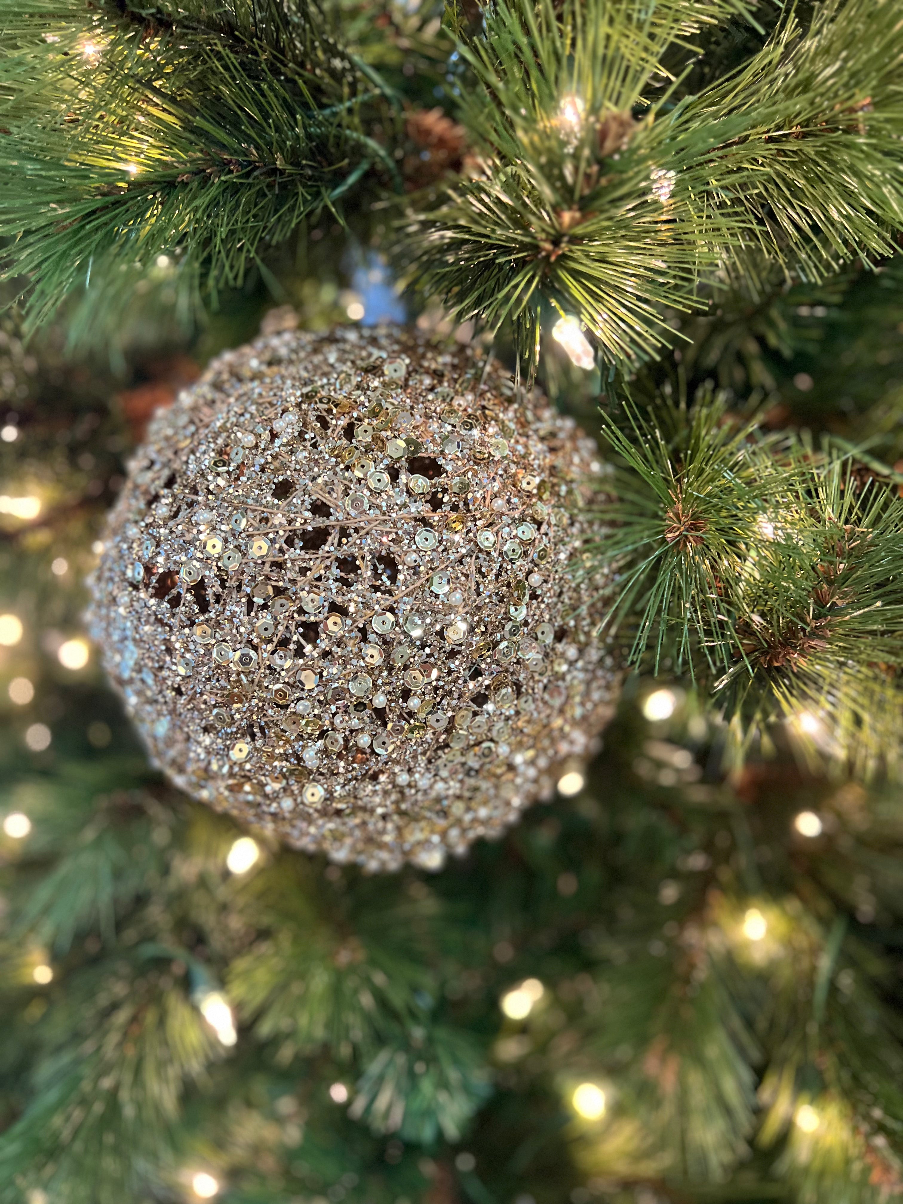8in Metalic Glittered Ball-Champagne gold Christmas holiday decor ball