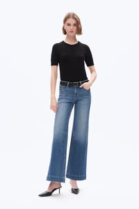 Effortless, cool, and confidently on trend. The Authentic Flow Low-Rise Wide-Leg Denim delivers a relaxed silhouette with just enough structure to flatter. Designed in Los Angeles and crafted from premium stretch denim, this medium blue wash pairs a throwback low-rise fit with a modern wide-leg shape—creating an easy, fashion-forward statement for spring and summer styling.