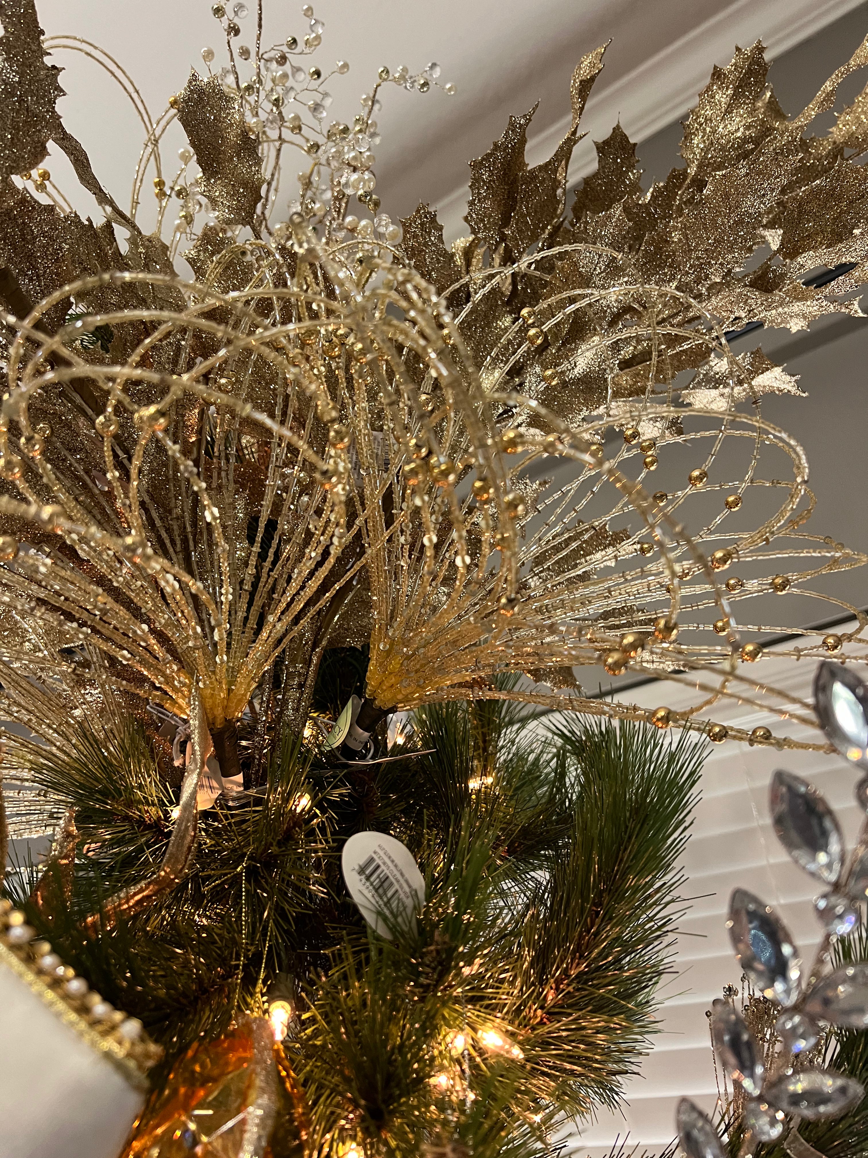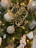 Add a touch of elegance and sparkle to your home or Christmas Tree with our 20" Beaded Jewel Flower Burst Stem in Champagne Gold. Crafted with precision and attention to detail, this stunning piece will elevate any room. The intricate beaded design and delicate flower bursts make it a versatile and eye-catching decor option.