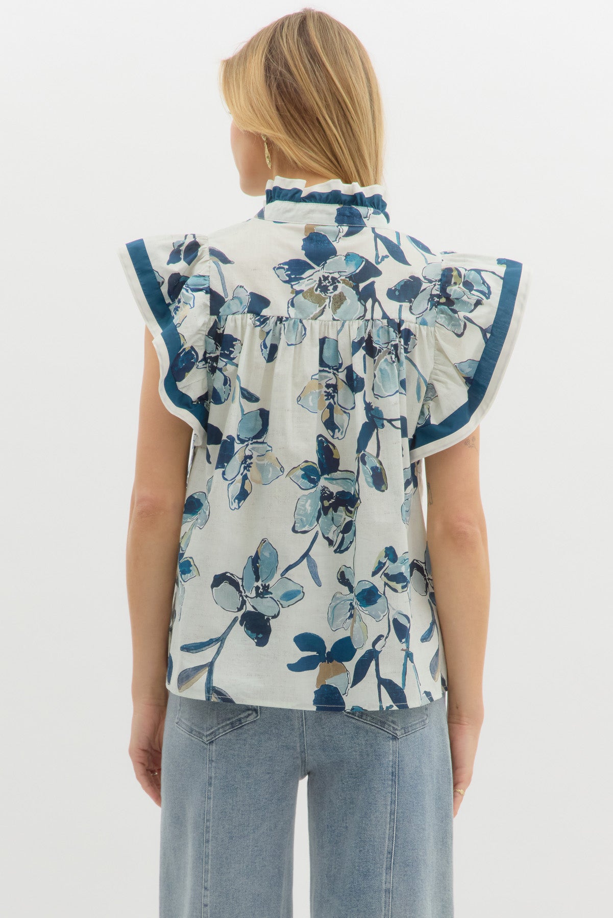Bloom Detail High Neck Flutter Top